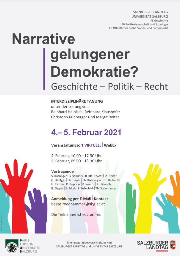 Gerne weisen wir auf diese INTERDISZIPLINÄRE TAGUNG unter der Leitung von Reinhard Heinisch, Reinhard Klaushofer Christoph Kühberger und Margit Reiter an der Universität Salzburg hin. Auch Online-Teilnahme ist möglich. mehr Anmeldung