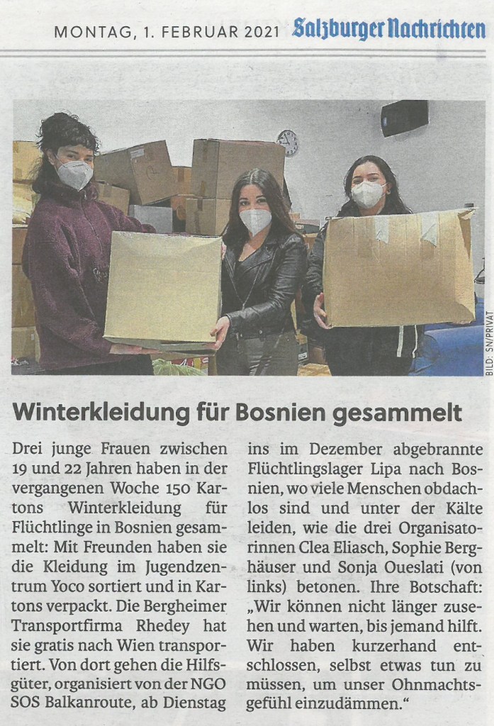 Februar 5, 2021Februar 5, 2021Hans Holzinger bild SOS-Balkanroute | Hilfe für Bosnien-Flüchtlinge | Tolle Aktion junger Salzburgerinnen Teilen mit: Klicke, um auf X zu teilen (Wird in neuem Fenster geöffnet) X Klick, um auf Facebook zu teilen (Wird in neuem Fenster geöffnet) Facebook Gefällt mir Wird geladen …