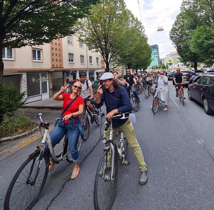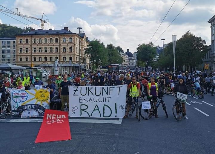 An die 4-500 Radfahrende demonstrierten am 11. 9.2021 in Salzburg für mehr und sichere Radwege, einen Ausbau der Radwegekoordinationsstelle statt deren Zerlegung sowie grundsätzlich eine fairere Verteilung des öffentlichen Raums unter den Verkehrsteilnehmenden. Eingeladen zur Demo hatte der Verein „Radlobby Salzburg“.