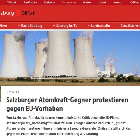 Salzburger Plattform gegen Atomgefahren kritisiert EU-Vorschlag | Beiträge des ORF