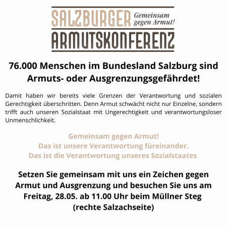 76.000 Menschen sind in Salzburg Armuts- oder Ausgrenzungsgefährdet! Videoaktion der Salzburger Armutskonferenz 28.5.