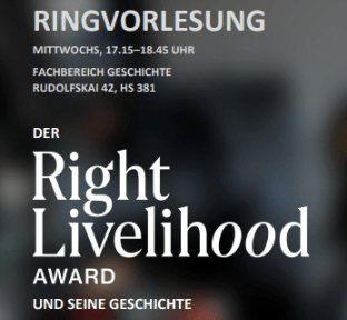 ‚Right Livelihood Award‘ und seine Geschichte“ – Ringvorlesung an der Universität Salzburg ab 11.10.