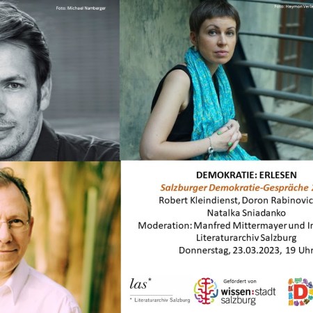 „Demokratie: Erlesen“ mit Robert Kleindienst, Doron Rabinovic, Natalka Sniadanko 23.3. 19 Uhr im Literaturarchiv