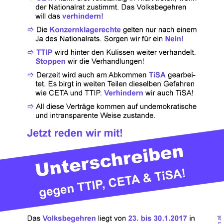 Volksbegehren zu „TTIP, CETA & TiSA“ | 23.-30.1.2017